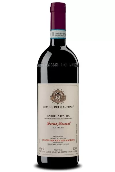 O Barbera d’Alba DOC Superiore “Sorito Mosconi”, da vinícola Rocche dei Manzoni, é elaborado com 100% Barbera proveniente de vinhas com cerca de 80 anos, cultivadas de forma sustentável em Monforte d'Alba, Piemonte. A fermentação ocorre por 10 a 12 dias em contato com as peles, em temperatura controlada. O vinho passa por um extenso envelhecimento de 24 meses em barricas de carvalho, seguido de estágio em tanques de cimento, garantindo estrutura, elegância e longevidade. Apresenta cor vermelho rubi intenso com tendência ao granada. O nariz revela um aroma característico, com notas ricas, suaves e toques de especiarias que, com o tempo, lembram o buquê de um Barolo. Em boca, mostra-se seco, encorpado e robusto, com textura aveludada, sendo um vinho que pode evoluir por décadas.