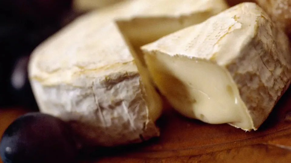 Camembert é um queijo francês com uma casca branca e florida e um interior macio e levemente líquido que amadurece primeiro próximo à casca.
